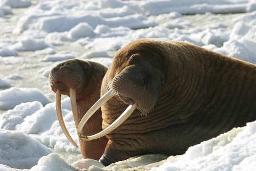Just as they don’t prefer to haul on the thin ice, walruses might not fancy living on a hard ice either so that they cannot break it through to catch seals. When the ice reaches the length of 20 cm it becomes unbreakable. Walruses don’t like this.